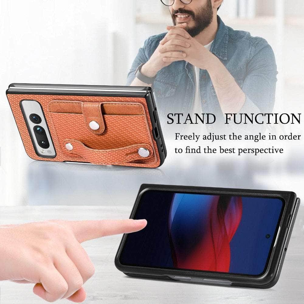Carry your cards and credit cards in style with the Google Pixel Fold Vegan Leather Wallet Card Pocket. Compatible with Pixel phones, this wallet features a vegan leather construction for durability. It also has a secure magnetic closure that keeps your items safe, meaning you can trust every card stored inside. Enjoy a sleek and stylish wallet while protecting your cards from physical damage.
