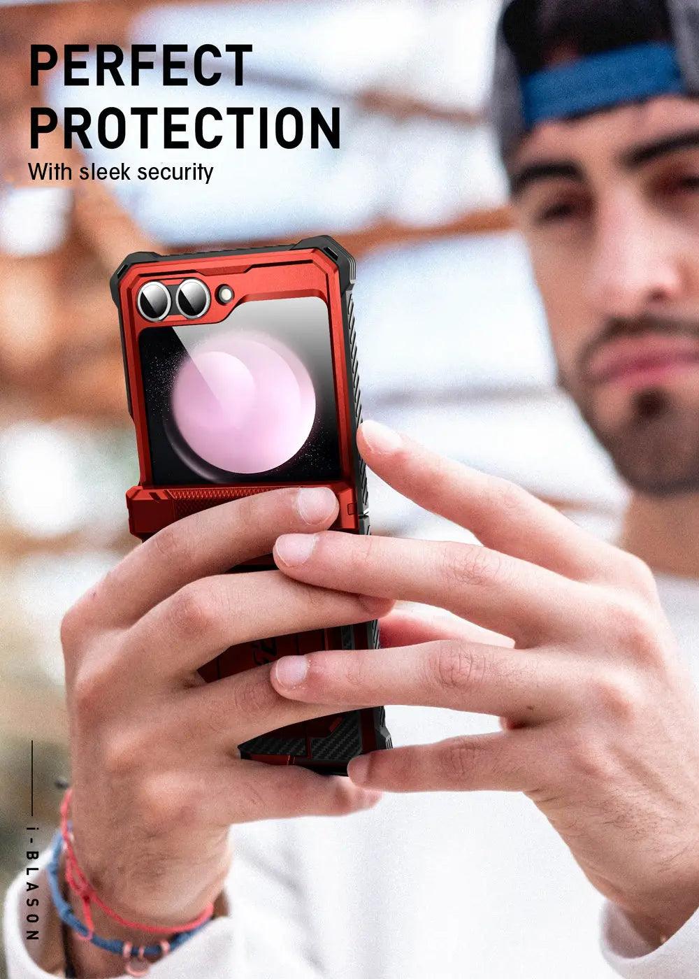 The I-BLASON Galaxy Z Flip 6 Armorbox Full-Body Rugged Holster provides ultimate protection for your device with its sturdy design and dynamic features. This rugged holster is specifically designed for the Galaxy Z Flip 6, ensuring a perfect fit and maximum security. Perfect for those who lead an active lifestyle, this holster will defend your device against drops, scratches, and impacts.