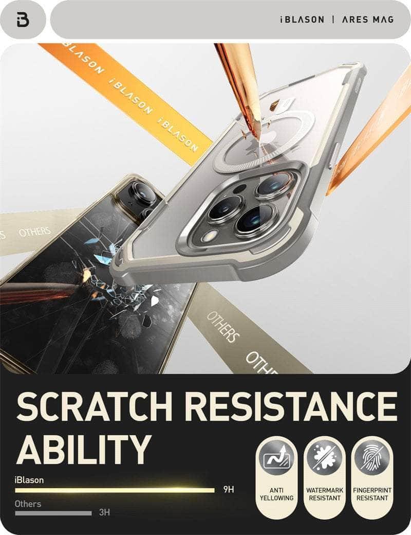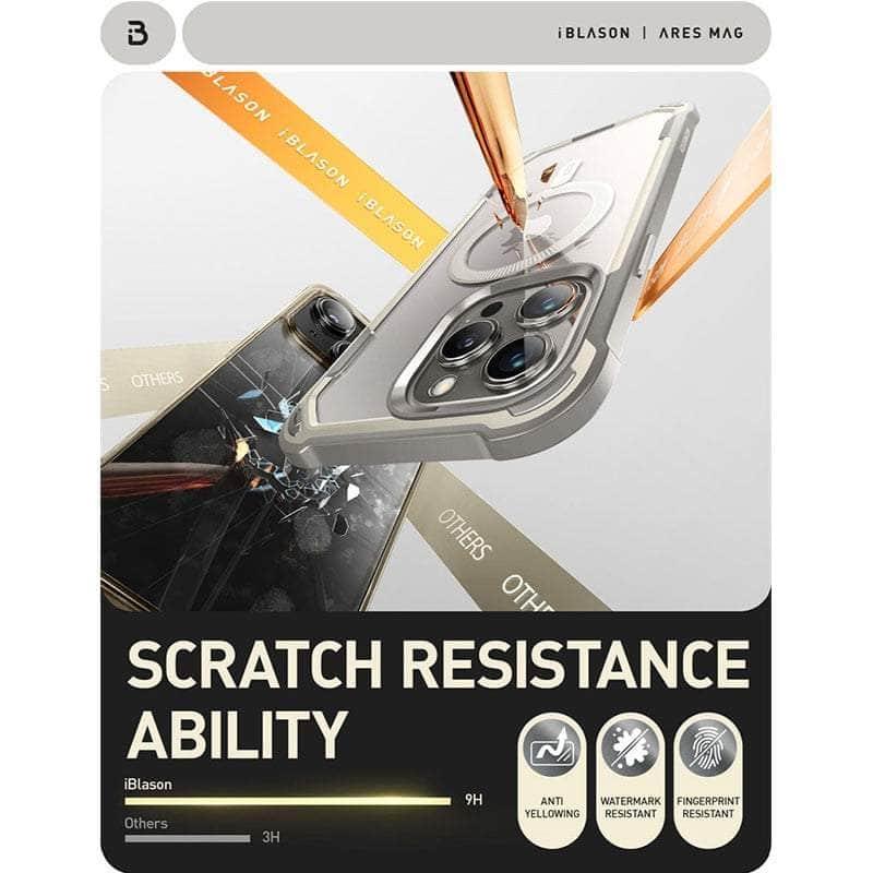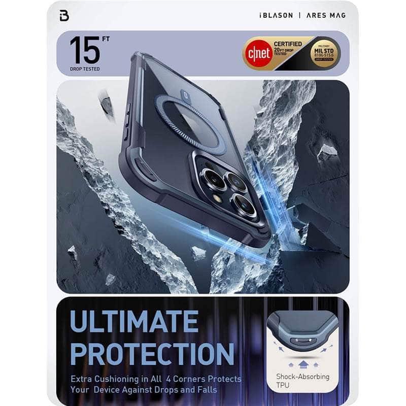 The iPhone 15 Pro Max I-BLASON AresMag Shockproof MagSafe Case is designed to protect your phone while providing the convenience of MagSafe charging. This case is scratch and shockproof, and built of high-quality, durable materials to keep your phone safe while you're on the go. The precise cut outs provide easy access to ports and buttons.