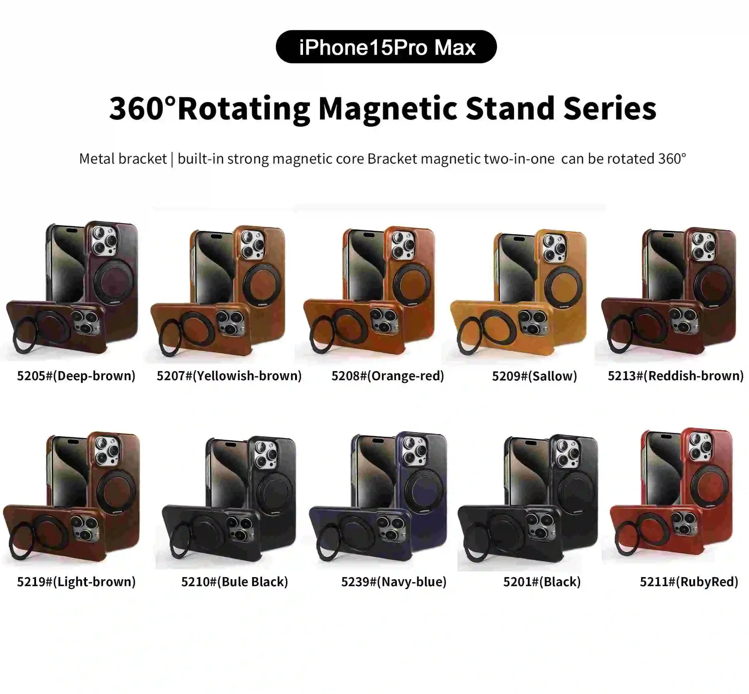 360° Rotating Magnetic Holder case: Magnetic Ring Genuine Leather Case