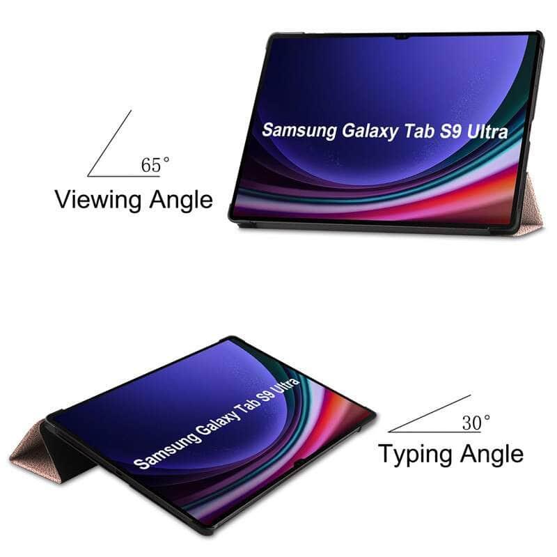The Tab S9 Ultra Trifold Magnetic Leather Stand provides a sturdy, secure hold for your tablet. Its powerful magnets ensure your device stays securely in place while the leather exterior offers sleek aesthetics and durability. The trifold design allows for a convenient, space-saving storage and transport.
