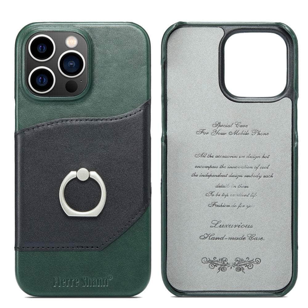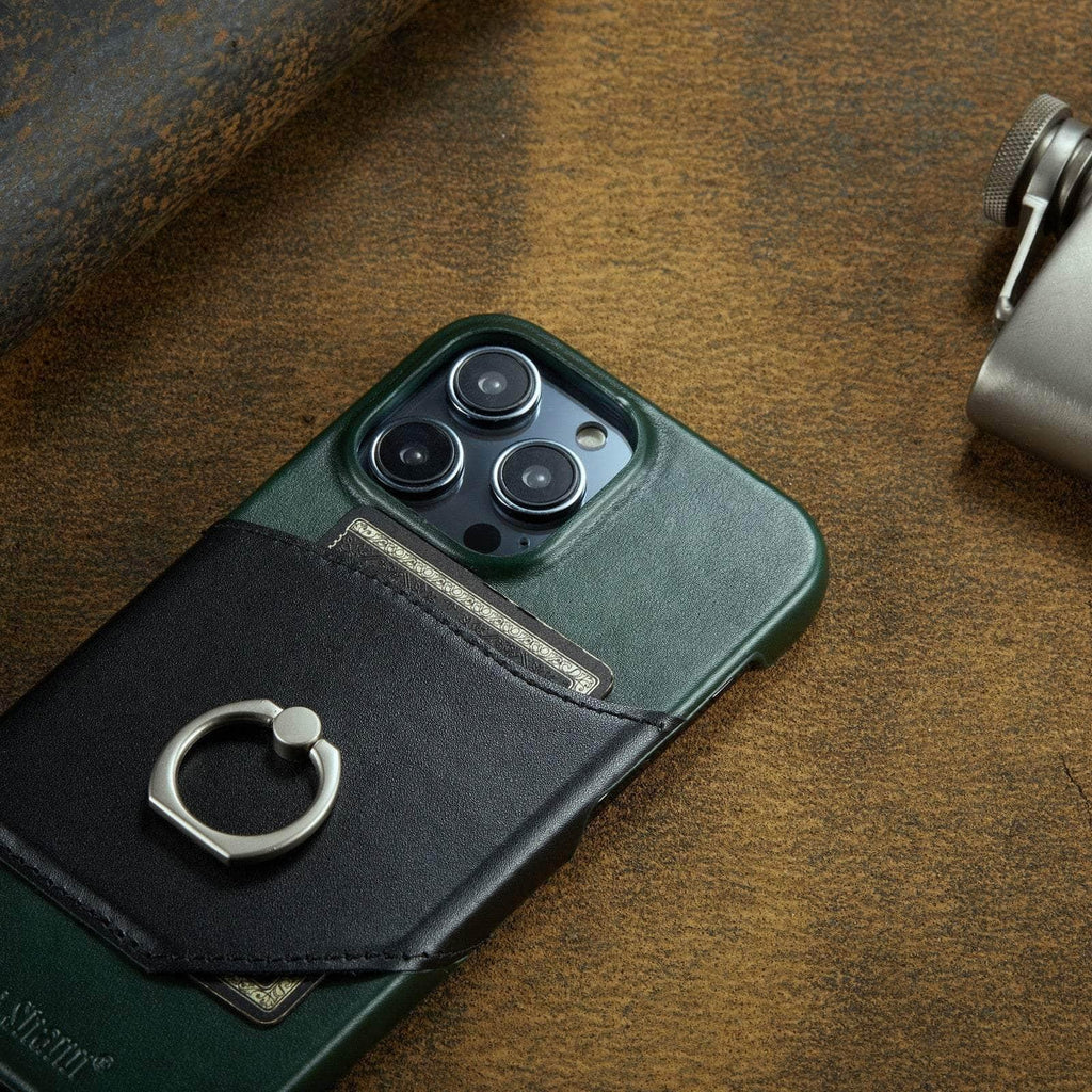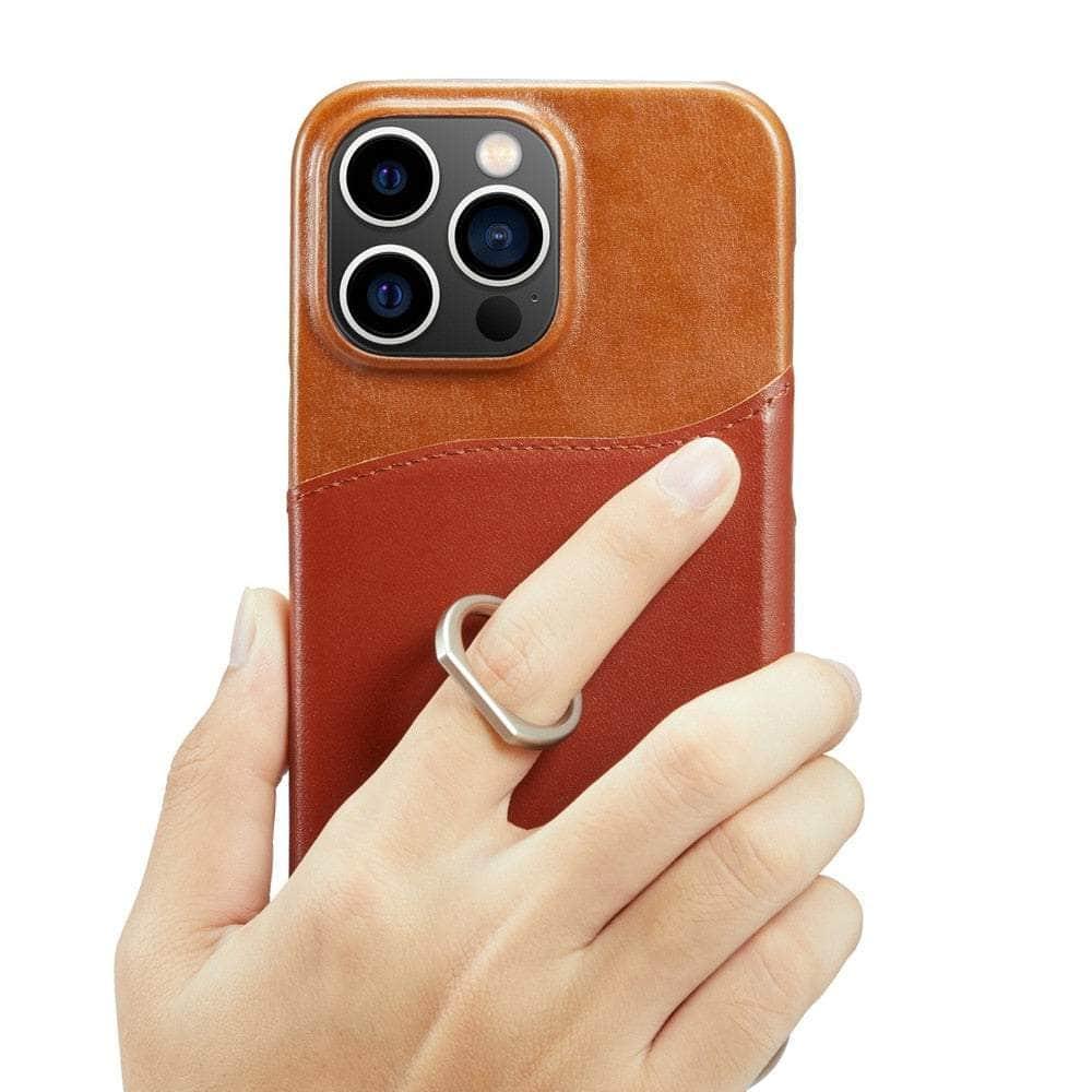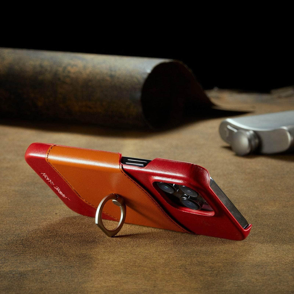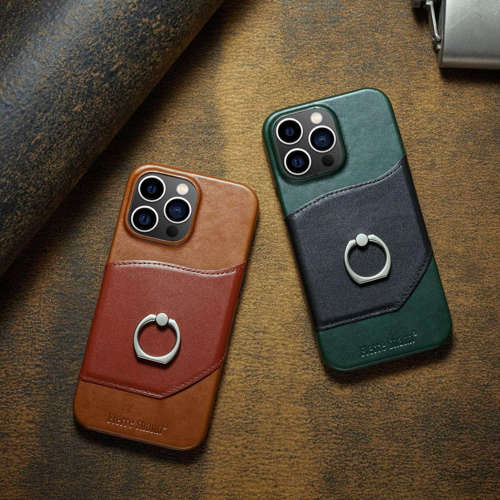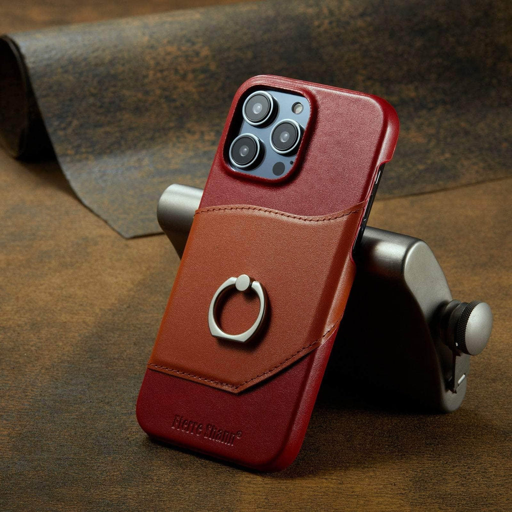 360° iPhone 15 Ring Kickstand Real Leather Cover