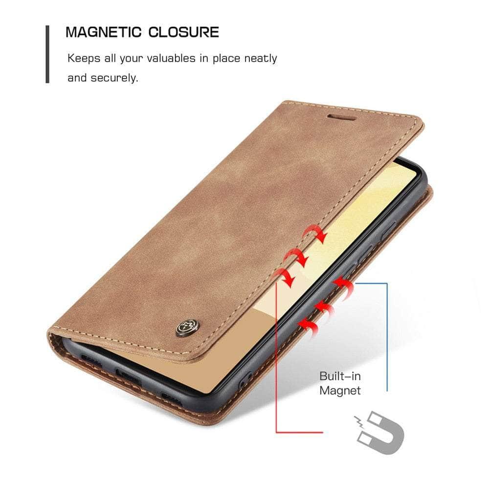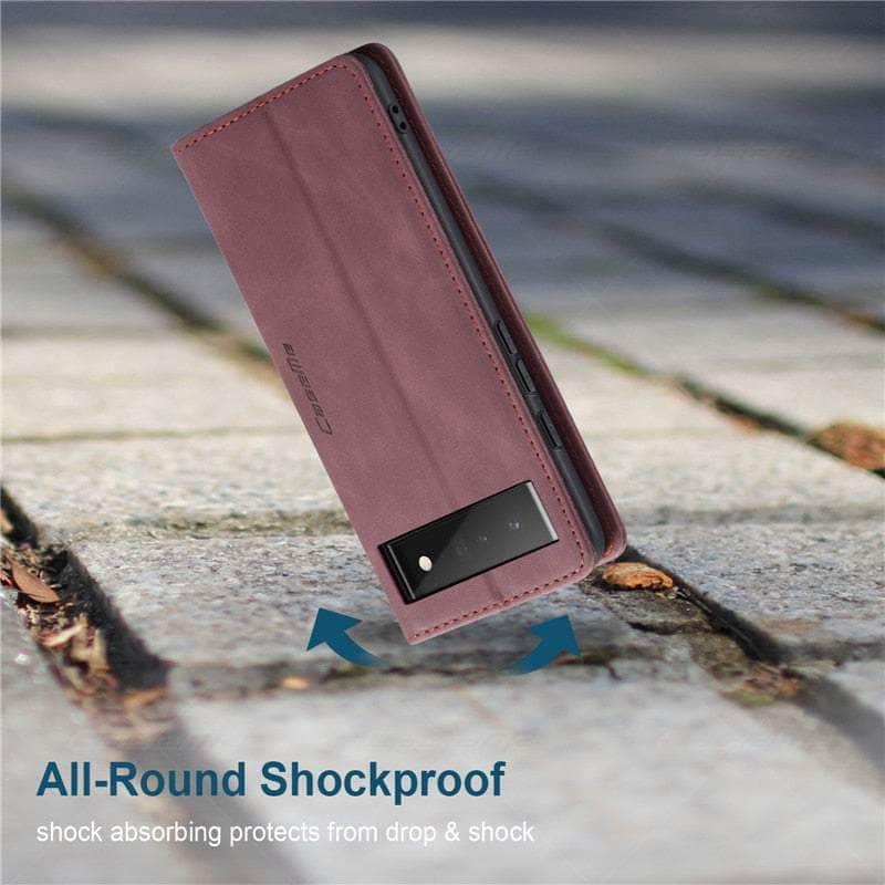The CaseMe Google Pixel 8 Pro Magnetic Flip Case offers excellent protection for your device. It is crafted from premium PU leather and plastic, and it features double magnetic closures to ensure your phone remains safe and secure. It also includes two slots for storing cards and cash for easy access. Protect your phone in style with the CaseMe Magnetic Flip Case.