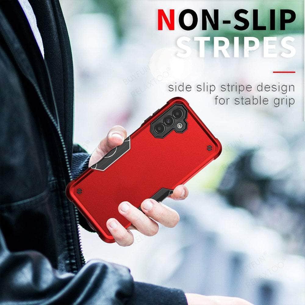 Protect your Galaxy A14 with this tough military grade armor hard case. Constructed using durable materials to absorb shock, this case will defend your device from potential drops and bumps. Stay worry-free as you enjoy your device knowing it's safeguarded by this strong and reliable case.
