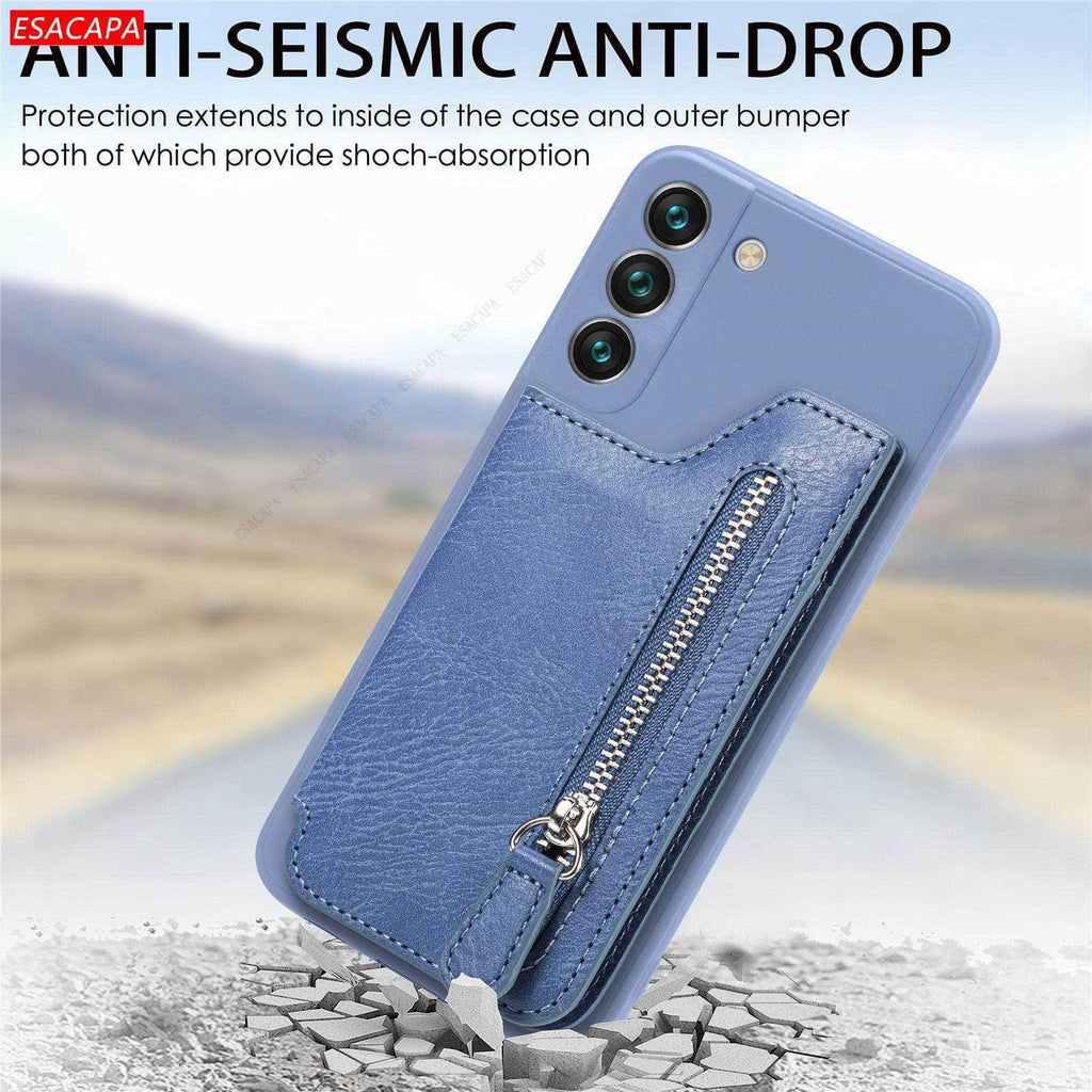 This Galaxy A54 5G Zipper Wallet Vegan Leather Case provides complete coverage of your device. Crafted from vegan leather, it's resistant, durable, and stylish. It also features a zipper closure, inner card pockets, and a detachable wrist strap for easy carrying.