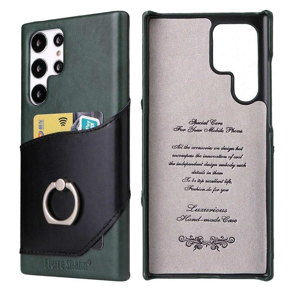 Genuine Leather Back Cover Metal Ring Finger Holder S22 Plus Card Pocket