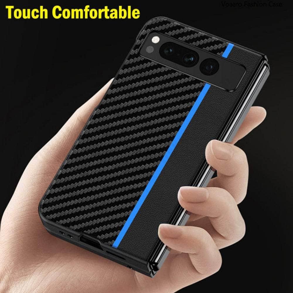 The Google Pixel Fold Thin Carbon Texture Case is designed to protect your device from scratches and knocks. It is lightweight and crafted with a special carbon texture for superior grip. This case is ideal for those seeking a slim and sleek design while keeping their device secure.