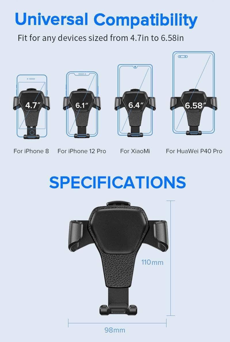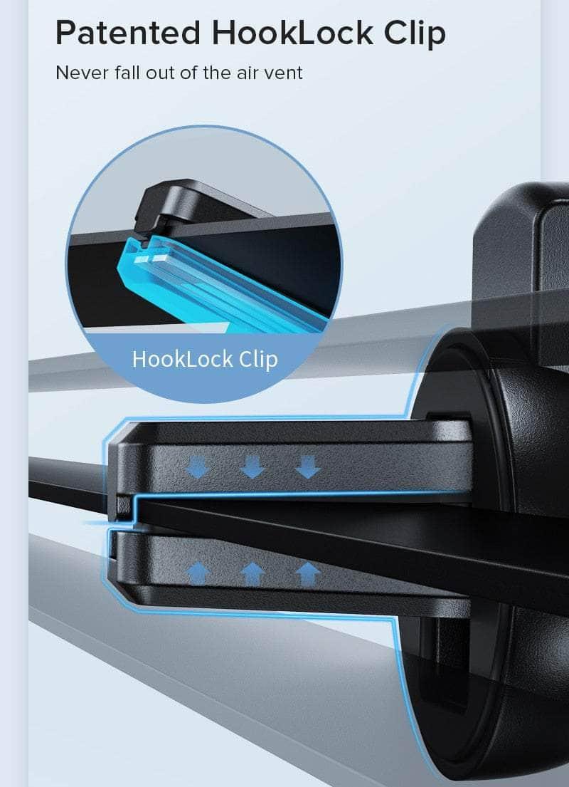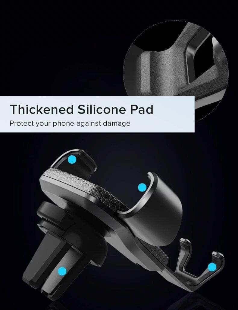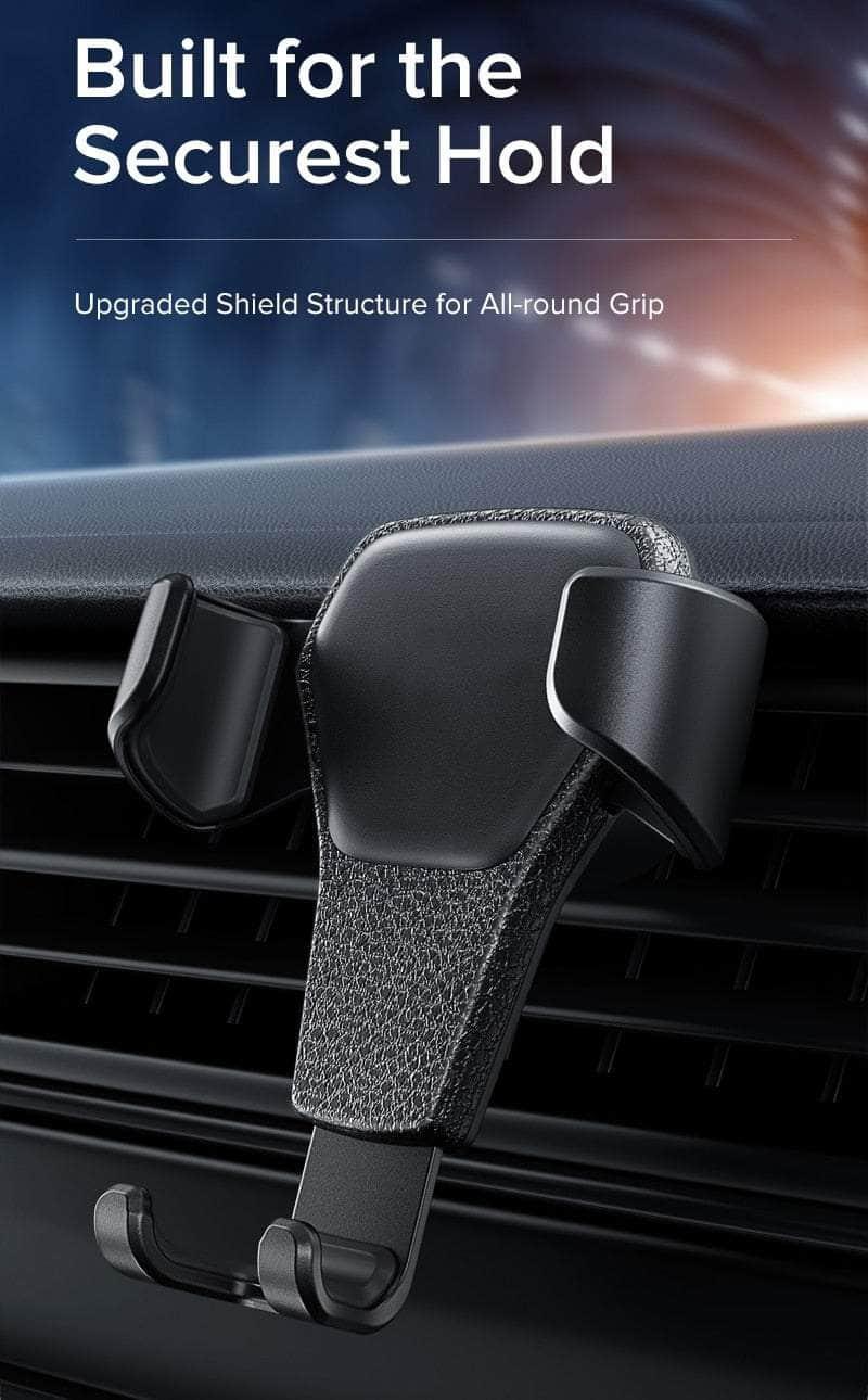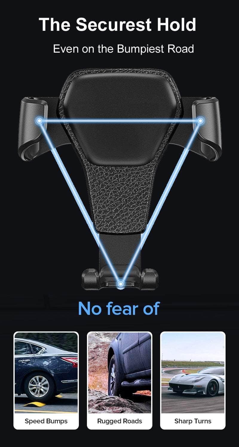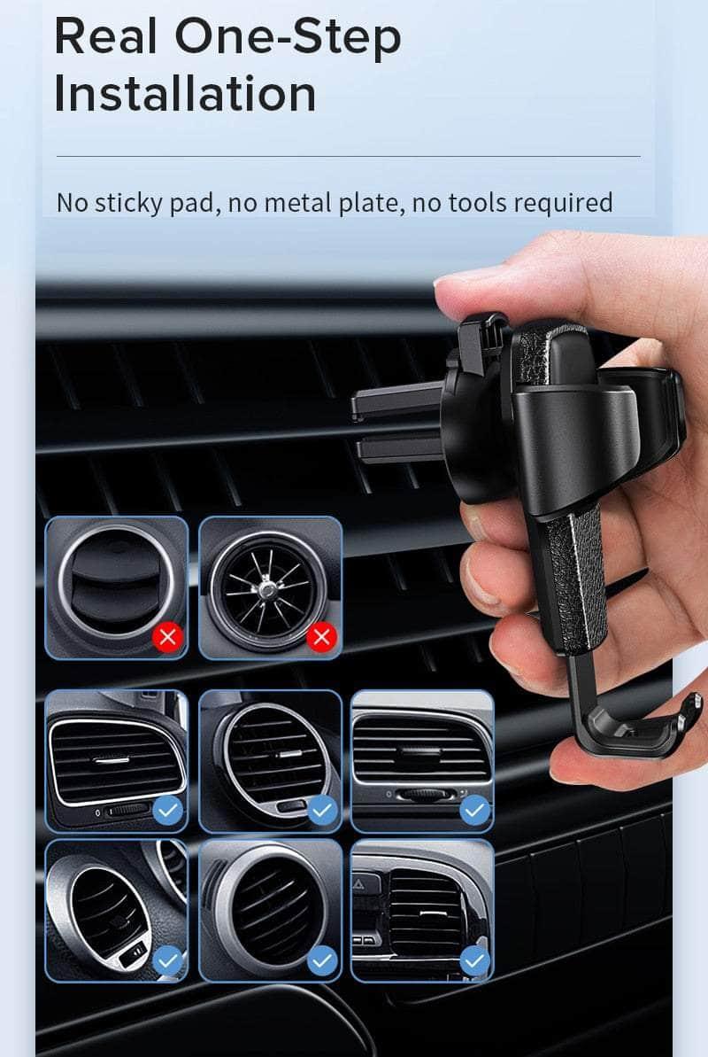 This Gravity Car Holder Phone Air Vent Clip will securely hold your phone in place while you drive. The unique gravity-activated clip design securely holds most phones without additional effort, so you can focus on the road without worry. Enjoy the convenience of easy one-handed operation.