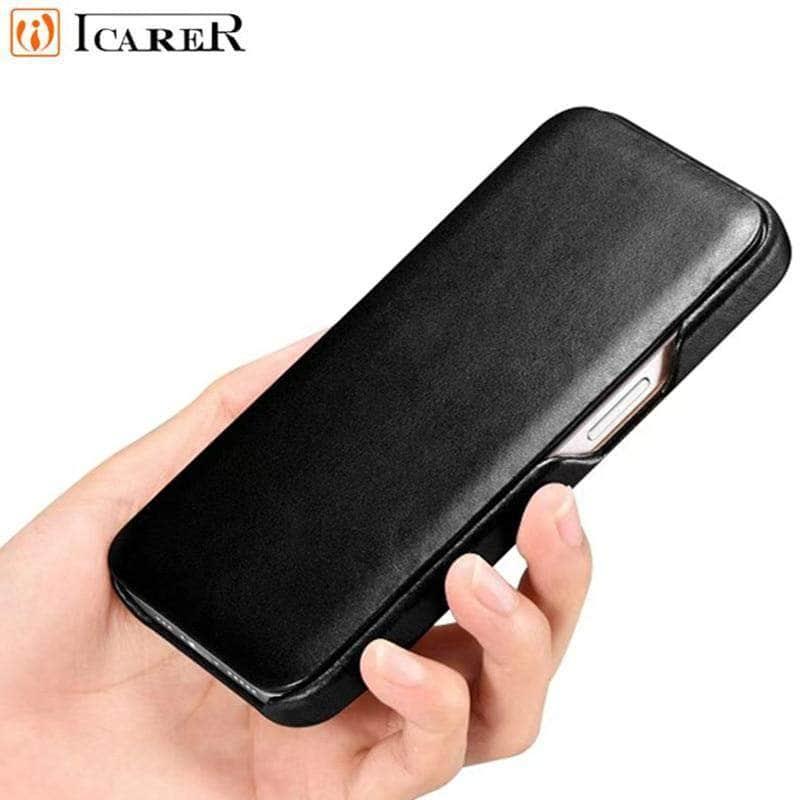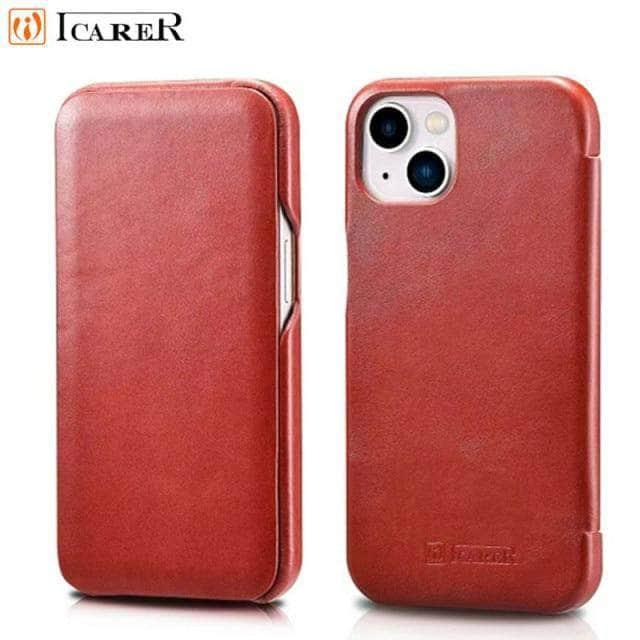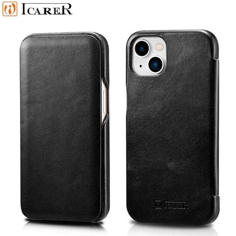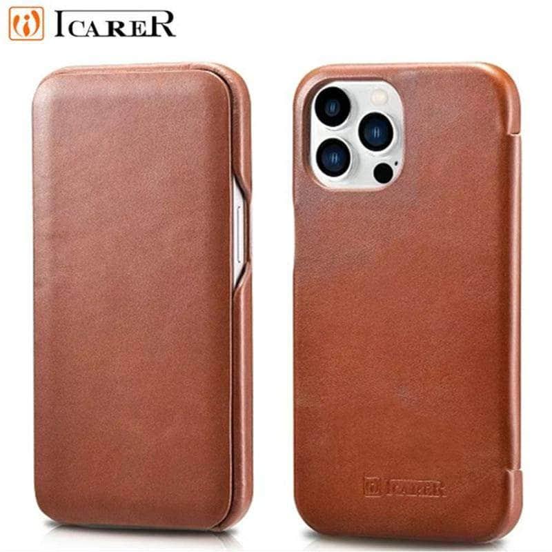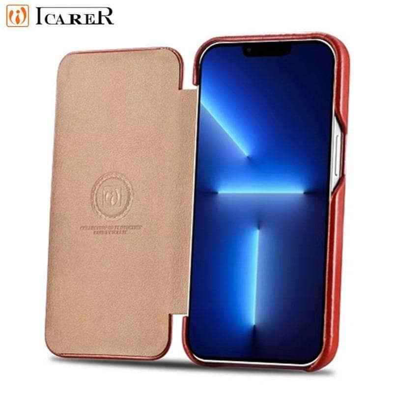 iCarer Genuine Leather Flip iPhone 13 Pro Max Case