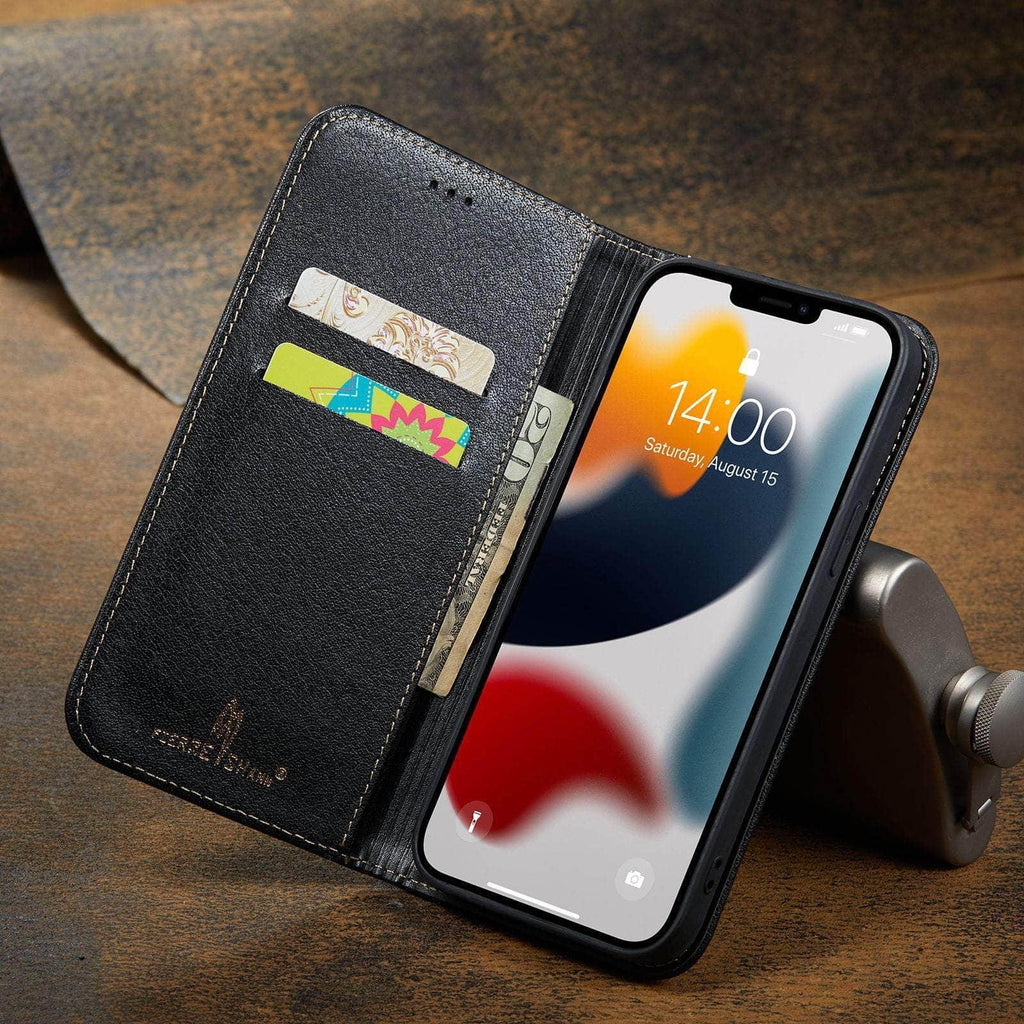 iPhone 14 Plus Real Genuine Leather Magnetic Flip Cover