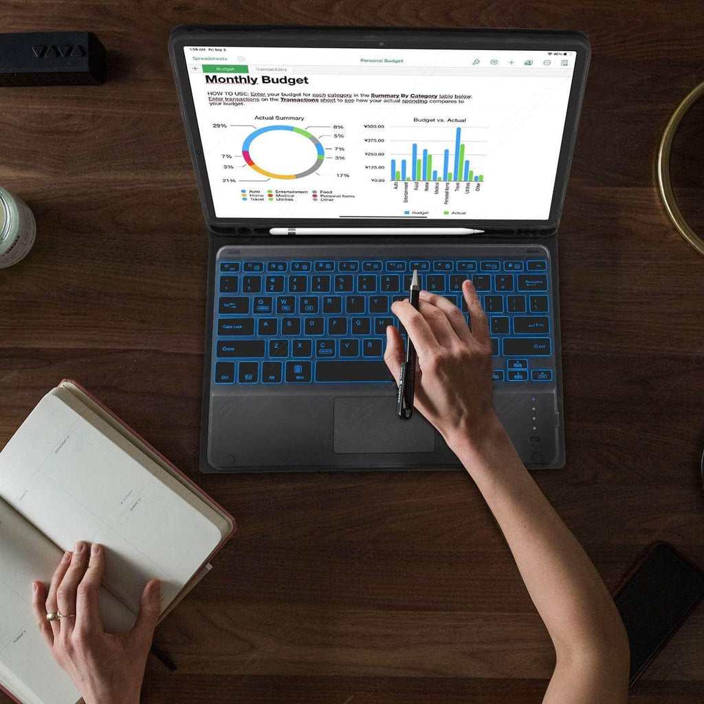 Features1: TrackPad Keyboard case with Pencil Holder