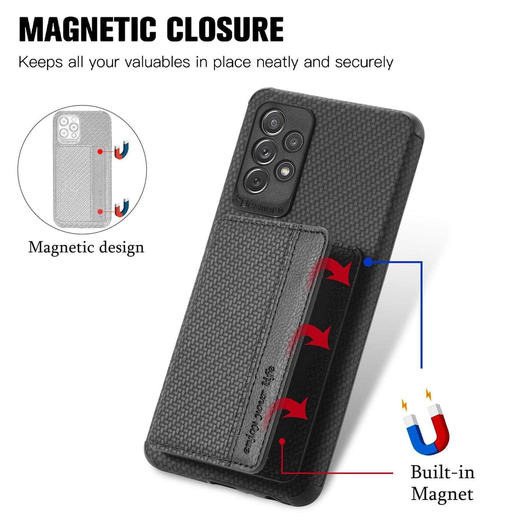 Carry your important cards in style with the Magnetic Wallet Galaxy A34 Card Holder Cover. This slim case attaches securely to the back of your phone with a strong magnet, allowing you to keep credit cards, IDs or cash cards handy without the bulk of a traditional wallet. Magnetically click your cards in place and never worry about losing them again.