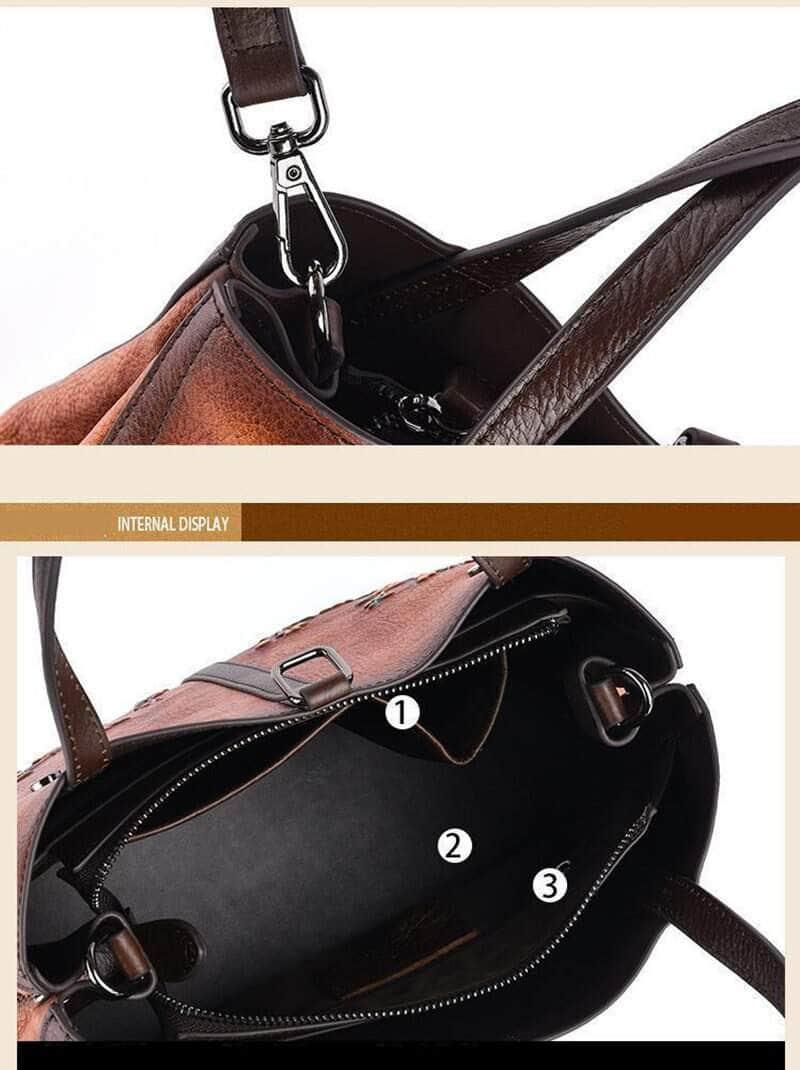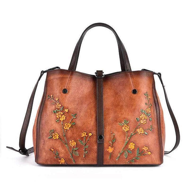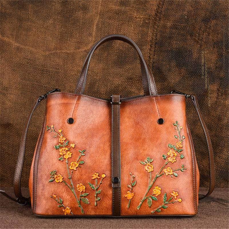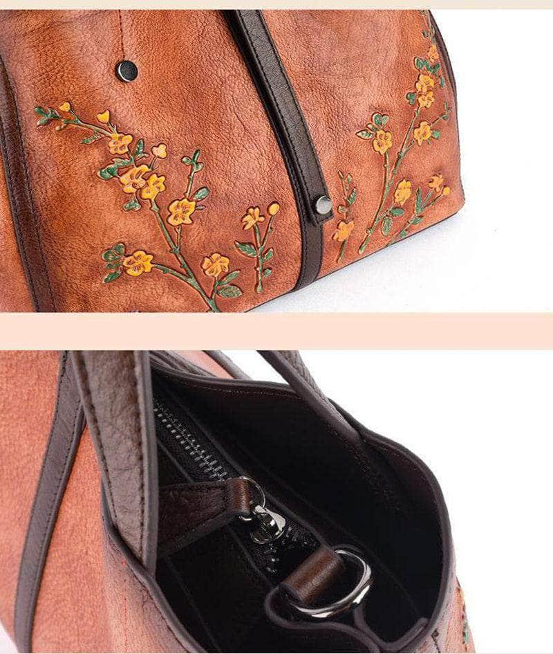 Nesitu A4 Flower Pattern Genuine Leather Women Handbag