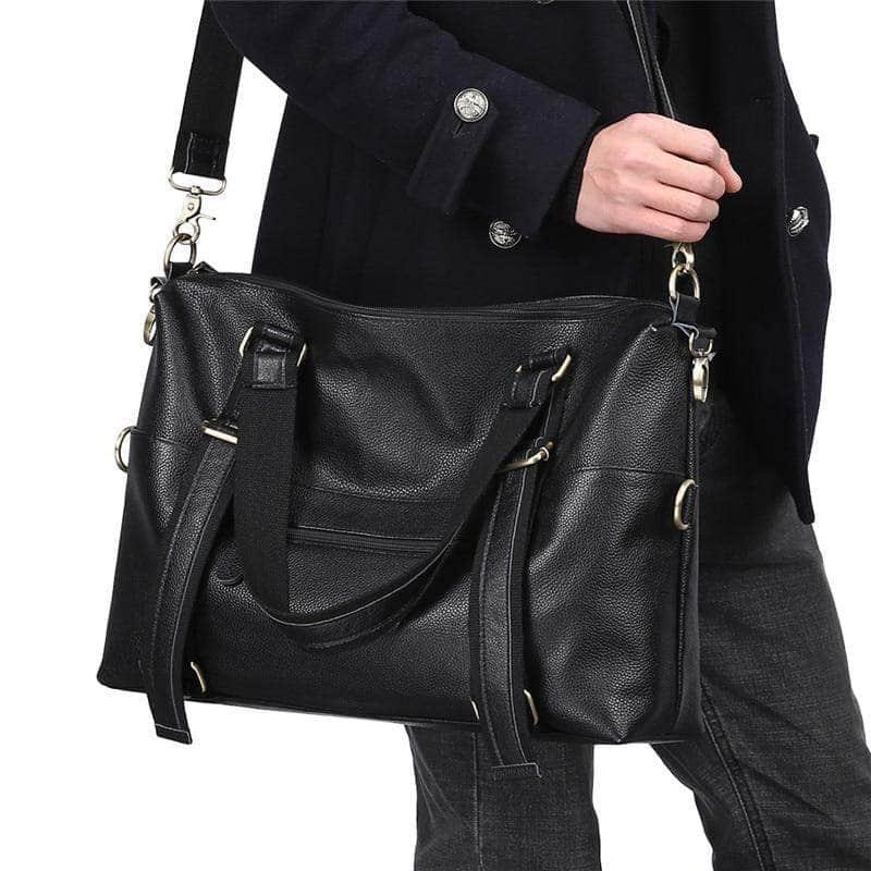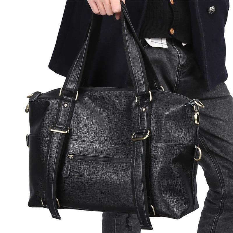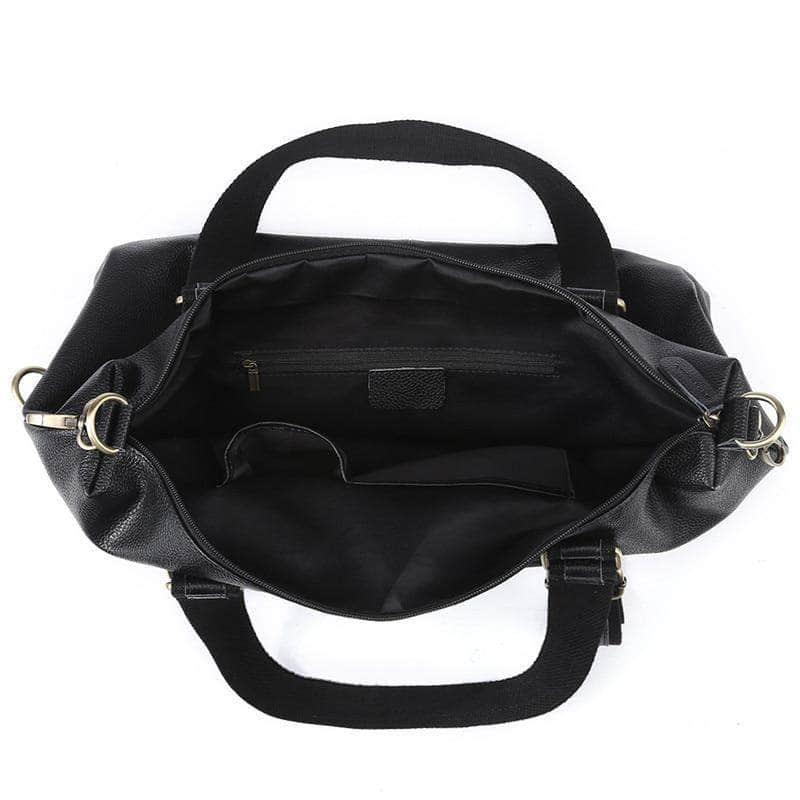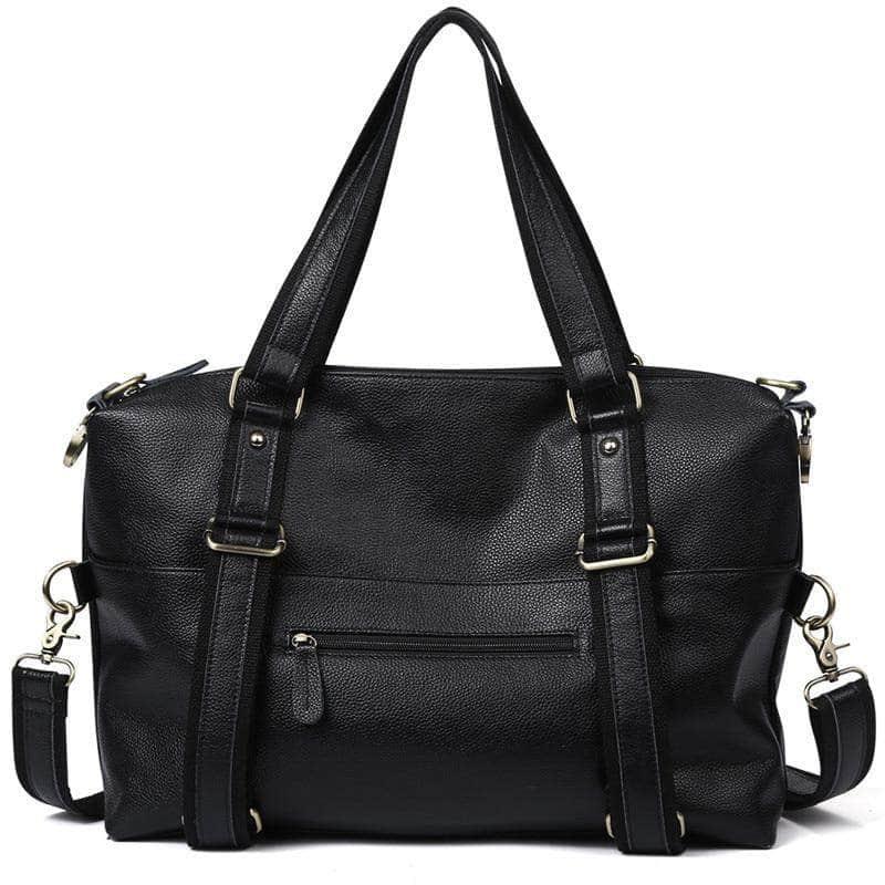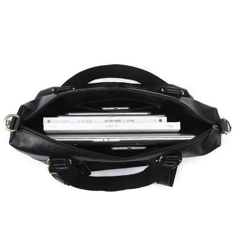 Nesitu Large Capacity Black Genuine Leather A4 Handbag