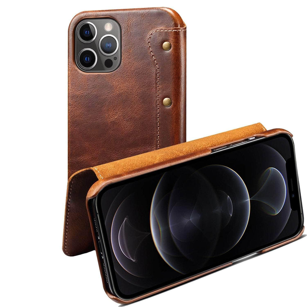 Real Leather iPhone 14 Max Leather Retro Wallet Case