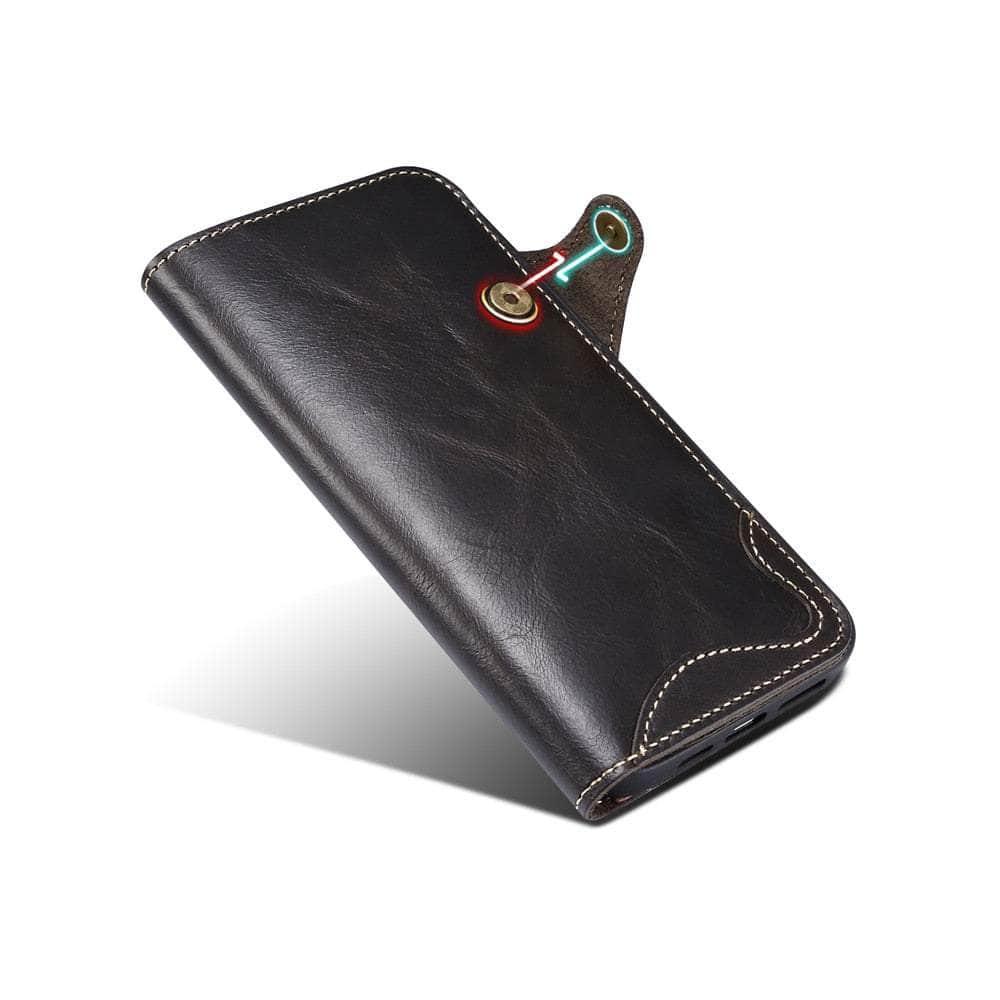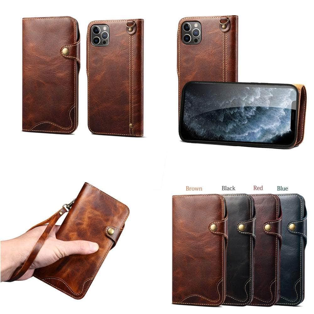 This Real Leather iPhone 15 Pro Vintage Card Case offers a classic yet modern way to protect your phone. Crafted of genuine leather, it offers a sophisticated look with maximum durability. The case seamlessly fits the phone and has two pockets to store cards or cash. Get this premium case for reliable protection with sophisticated style.